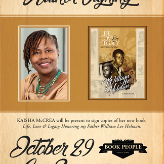 I enjoyed sharing Life, Love & Legacy Honoring my Father William Lee Holman with others this year. I have been honored to meet new people and reconnect with family and friends during my travels this year! I had a wonderful experience visiting Book People Richmond and sharing highlights from my book and discussing with the group that joined us. I am grateful for this opportunity to share at a book store for the first time!